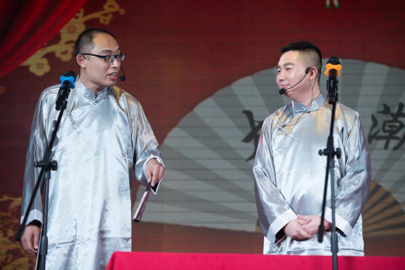 相聲不光說(shuō)話(huà)要狠,接話(huà)也必須要準。百得“說(shuō)學(xué)逗唱”雙人組自創(chuàng )相聲,逗得觀(guān)眾捧腹大笑。