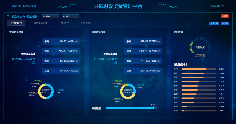 “縣域財政資金管理平臺”基于對縣域資金使用管理過(guò)程中的各類(lèi)基礎信息、指標與支付、項目實(shí)施與績(jì)效等數據進(jìn)行全量歸集,并按照財政部統一業(yè)務(wù)規范與數據標準對各類(lèi)數據進(jìn)行有效關(guān)聯(lián)、合理分類(lèi)、靈活統計、及時(shí)預警,可為縣級領(lǐng)導、財政部門(mén)、各預算單位提供貼心便利的財力監控、債務(wù)、進(jìn)度、預警、資金安全、結余結轉、調整調劑監控等服務(wù)。
